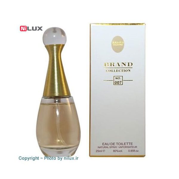 عطر مینیاتوری زنانه برند کالکشن شماره No.007 فرم کوچک شده ی عطر Jadore Christian Dior می باشد که در ابتدا با رایحه ی ترنج، خربزه، ماگنولیا، هلو، پرتقال ماندارین و گلابی آغاز می شود در نت میانی می توانید رایحه های رز، بنفشه، زنبق وحشی، یاس، ارکیده، فریزیا، آلو و گل مریم را استشمام کنید و در انتها به رایحه ی وانیل، مشک، چوب سرو و شاه توت ختم می شود. ادو تویلت Brand Collection No.07 با رایحه ی شیرین و خنکی که دارد برای مصرف در تمام فصول سال مناسب بوده و حسی سرشار از اعتماد به نفس و آرامش را برای شما به ارمغان می آورد .